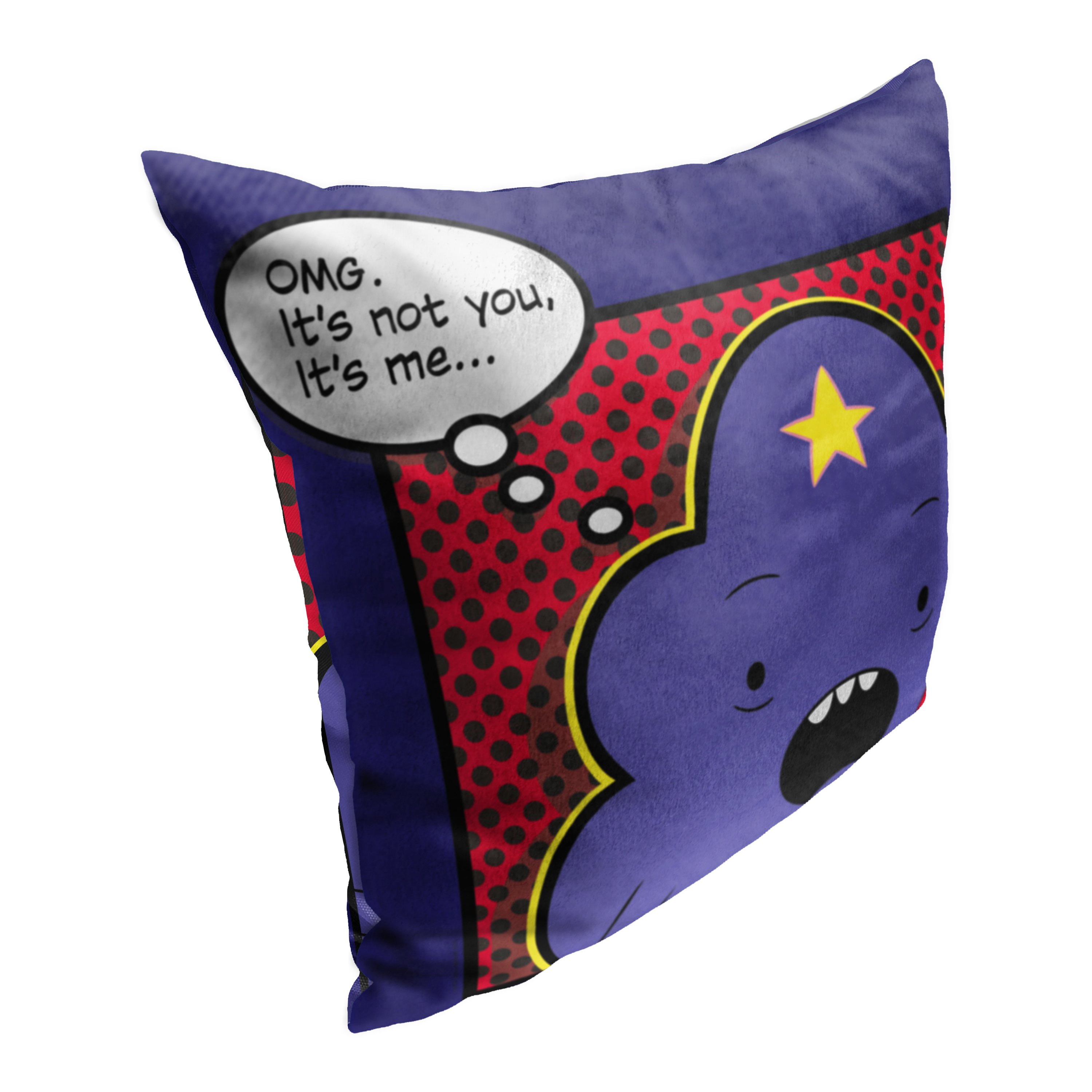 Add a fun personal touch to your home decor with this Warner Bros. Adventure Time "It's Not You It's Me" Soft and Comfortable Double-Sided Pillow is the perfect choice. Measuring 18"W x 18"L, this pillow is the perfect size for snuggling up on the couch or adding an extra touch of comfort to your bed. Featuring the same design on both sides, this pillow is as stylish as it is comfortable. Whether you're reading a book, binge-watching your favorite show, or just need a cozy place to rest, this pillow has got you covered.