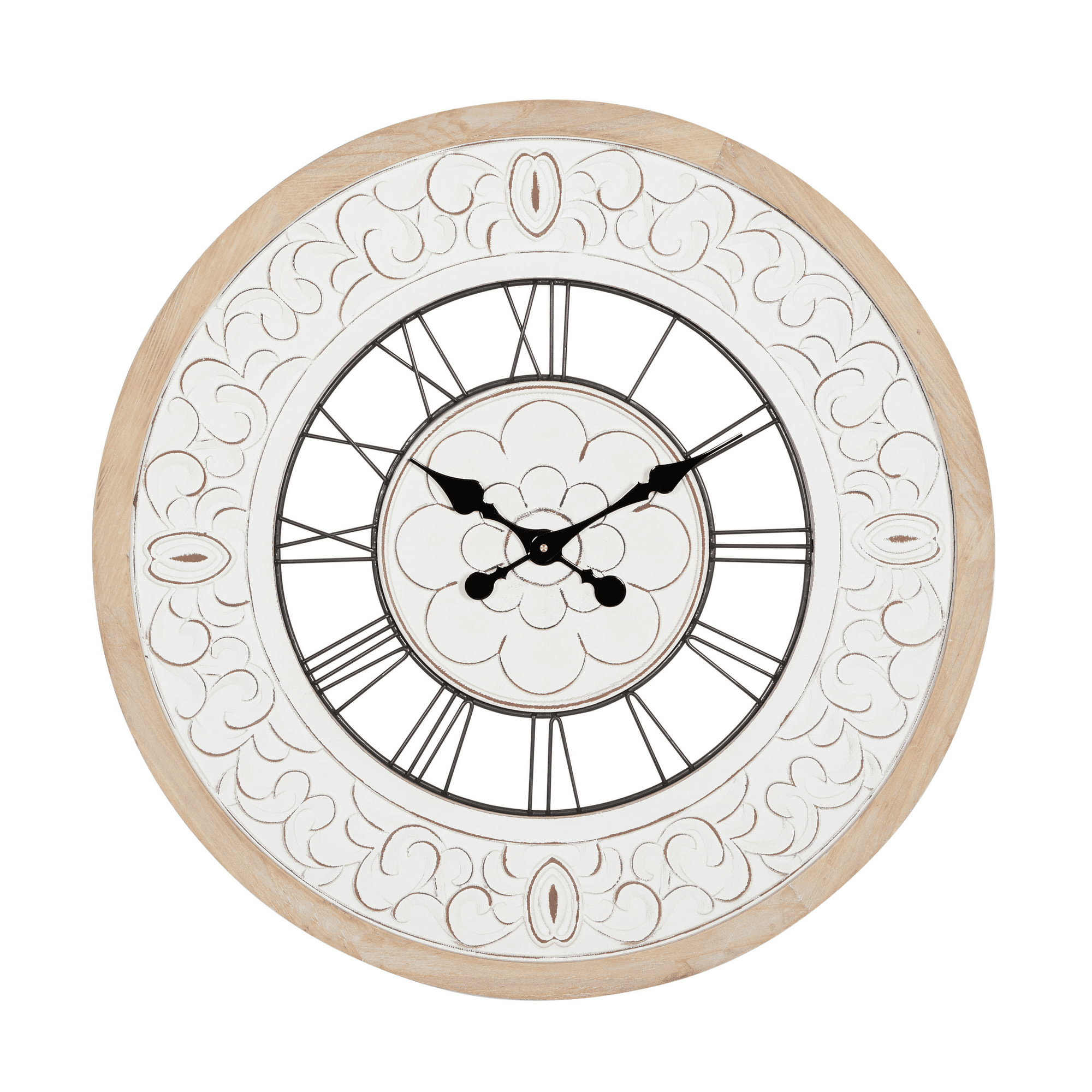 Home > DecMode 32" White Wood Floral Carved Wall Clock