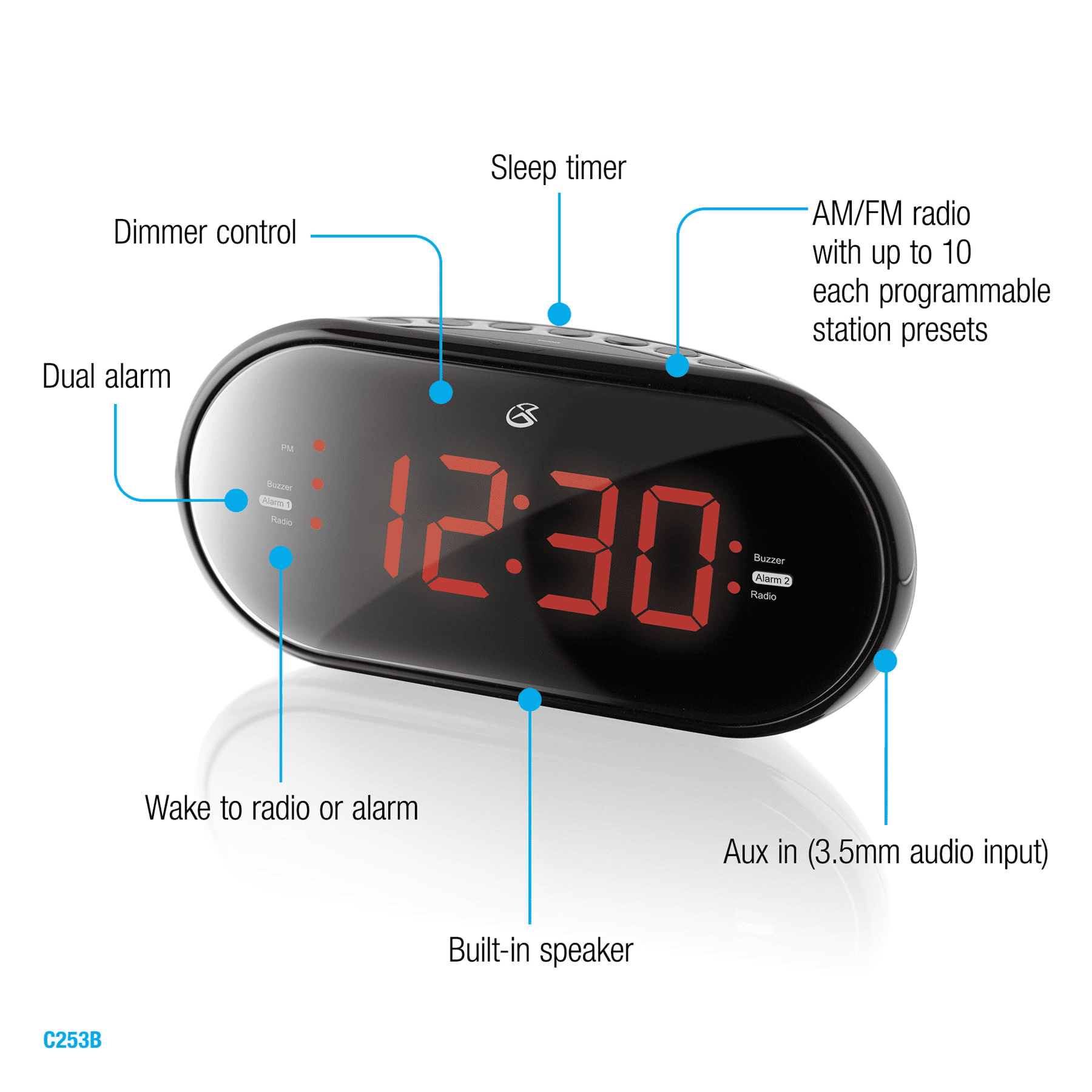 GPX LED Digital Radio/Dual Alarm Clock, C253B, Black GPX LED Digital Radio/Dual Alarm Clock, C253B, Black GPX LED Digital Radio/Dual Alarm Clock, C253B, Black