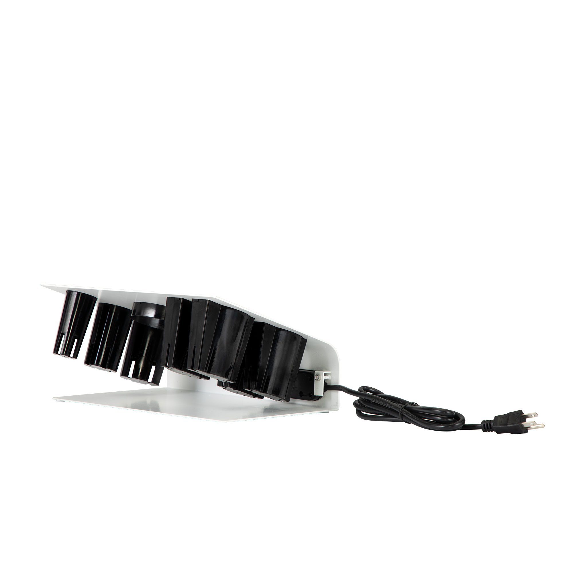 [Versatile with Multiple Holders]: 8individual compartments are sized to fit most hair styling tools. A large round holder is used for a blow dryer in the center. 3smaller round holdersare used for curling irons and hot combs. 4wide holders offer spacefor your flat irons and wavers.