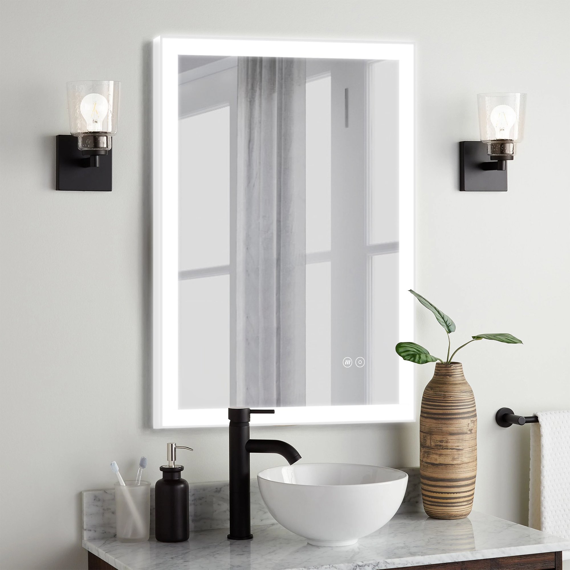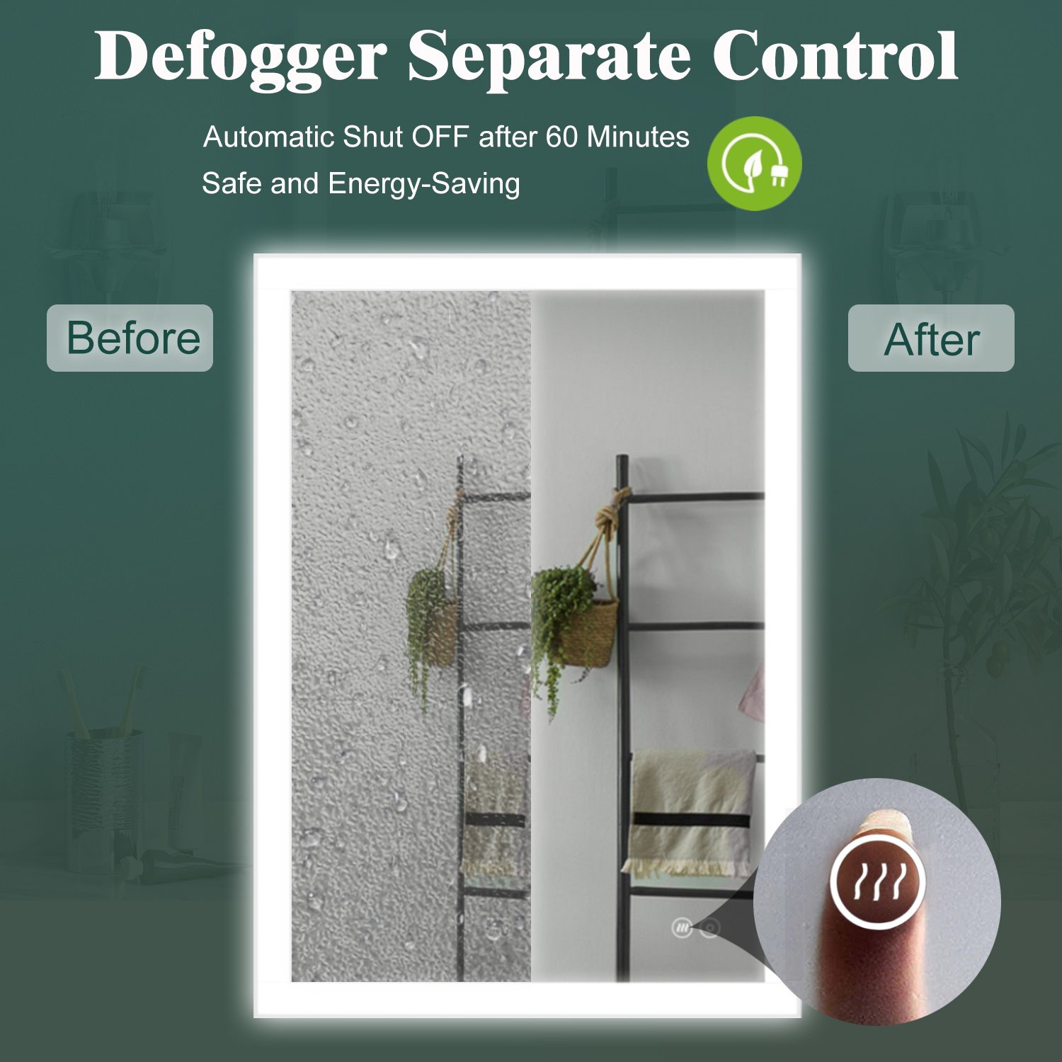 LED mirror features anti-fog technology and a modern design. The defogger will help keep the mirror clear in humid conditions. The LED light is 6000K CCT daylight and 2200 lumens; providing ample light for detailed tasks. Control the LED light with the touch sensor button on the mirror. The brightness of the light can be adjusted from 100% to 10% using the touch sensor button.
