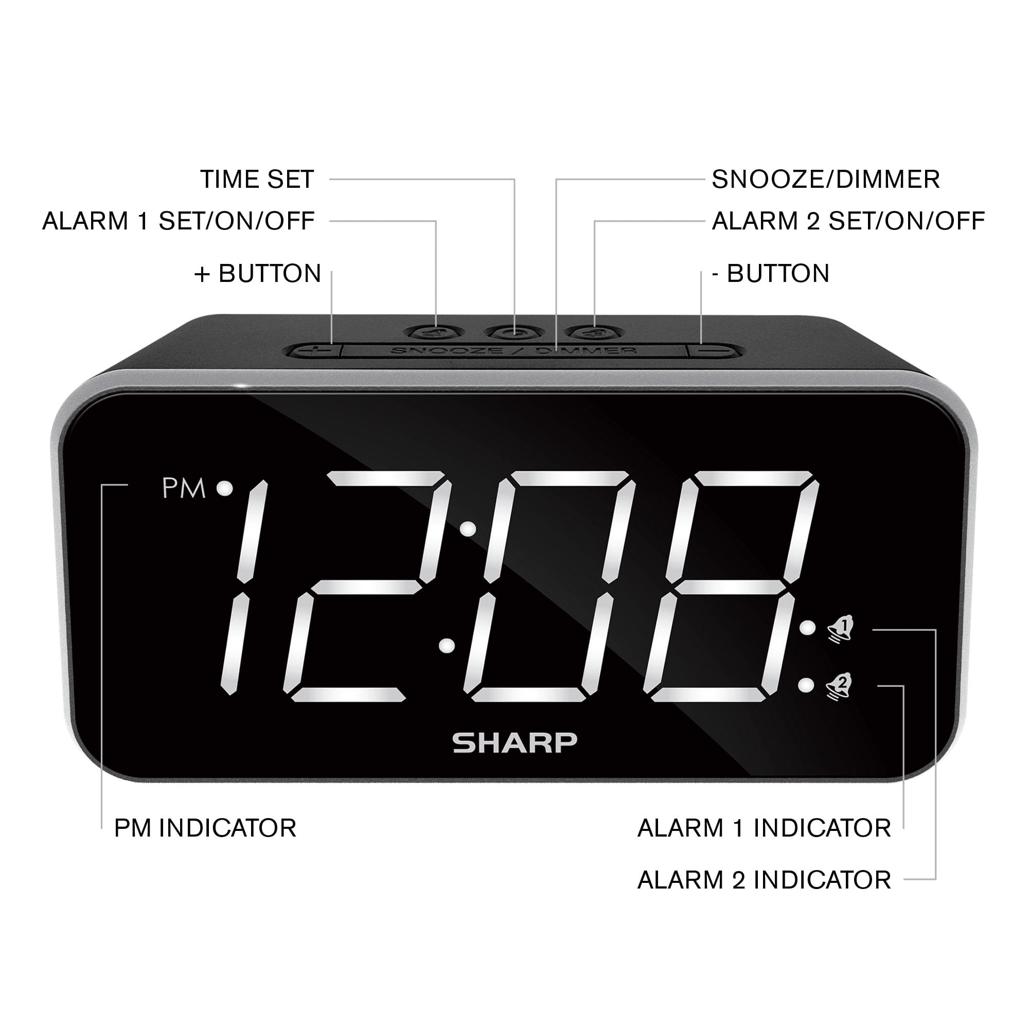 Home > SHARP Dual Alarm Clock with Jumbo Easy to Read 1.8' White LED Display, Black Case