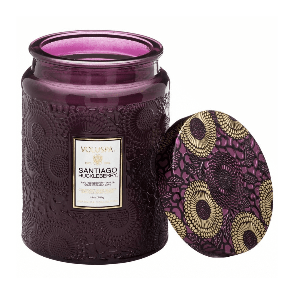 Voluspa Santiago Huckleberry Large Embossed Glass Jar Candle (18 Ounces)