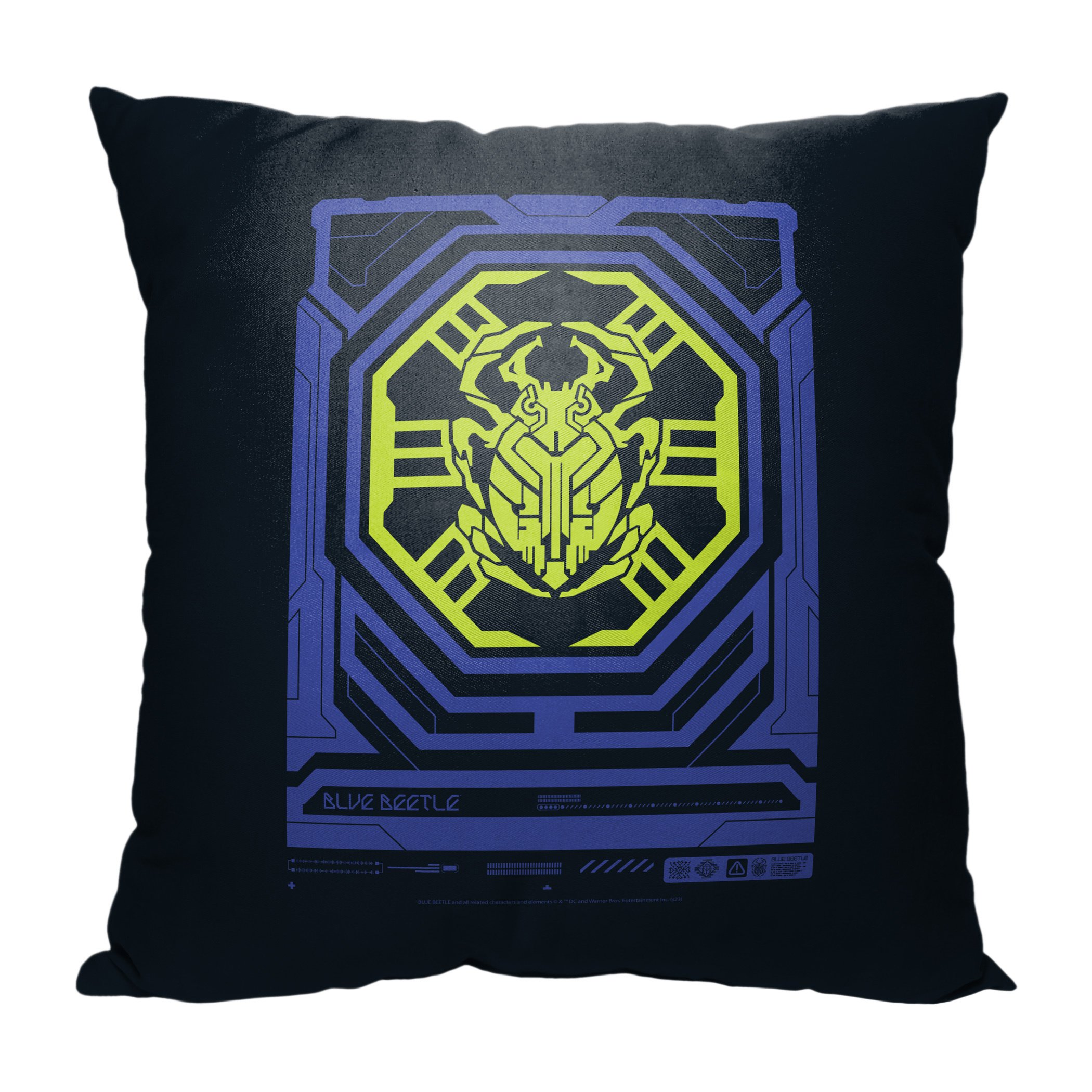 Step into the thrilling universe of Warner Bros. Blue Beetle with our Soft and Comfortable "Biotech Scarab" Decorative Pillow. A cozy testament to your love for this iconic superhero. Place this decorative pillow in your living space, bedroom, or any corner that craves a touch of superhero energy.